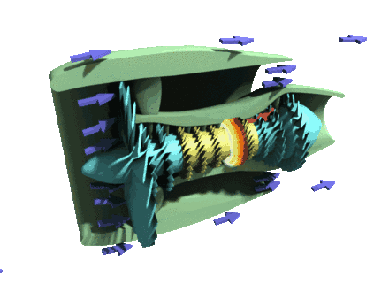 渦輪風(fēng)扇發(fā)動(dòng)機(jī),大型運(yùn)輸機(jī)的發(fā)動(dòng)機(jī)。渦扇氣路兩條,外邊這條提供基本70-80%的推力,里邊這條僅提供20-30%的推力。
