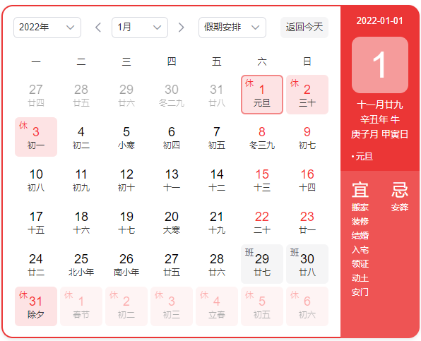 1月1日(星期六)至3日(星期一)放假,共3天。節(jié)日期間注意安全,減少人員聚集和外出,加強(qiáng)個(gè)人防護(hù),度過(guò)一個(gè)歡樂(lè)、祥和的節(jié)日假期。