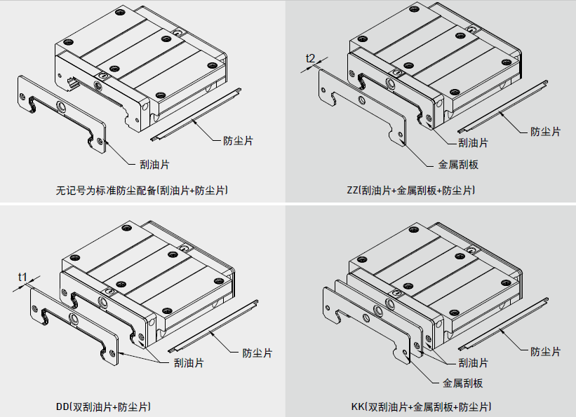 阻止加工鐵屑或塵粒進入滑塊里面,破壞珠道表面而降低直線導(dǎo)軌壽命。