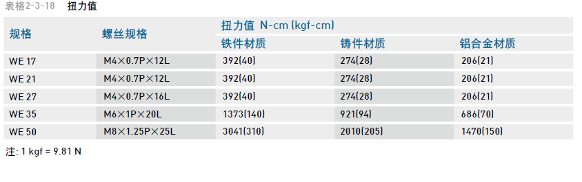 (2) 導(dǎo)軌裝配螺絲之扭力值