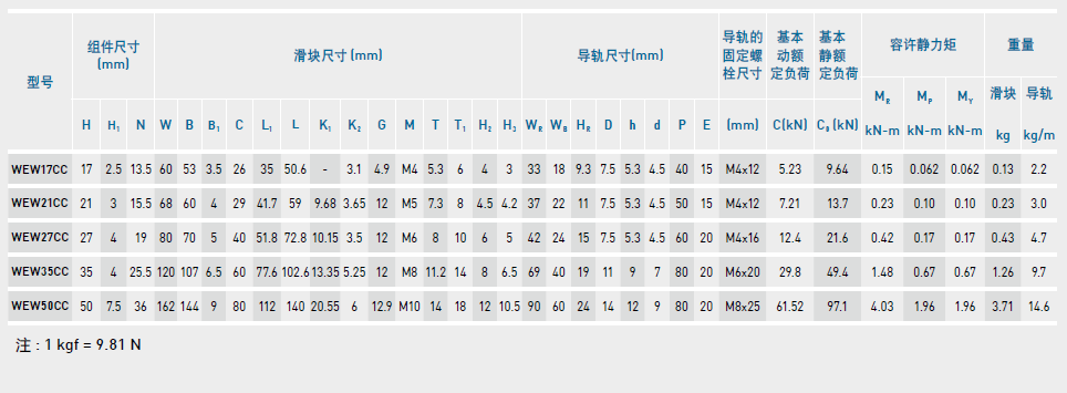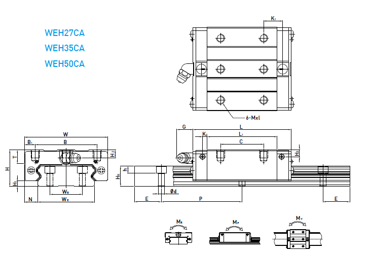 直線導(dǎo)軌寬幅型直線導(dǎo)軌WE系列尺寸表
