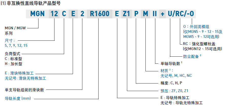 2. MGN及MGW規(guī)格9,12,15可選用防塵片。