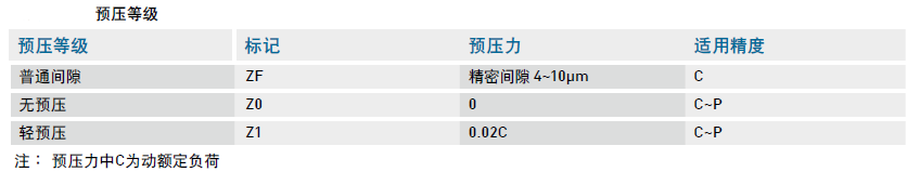 MGN/MGW 系列提供普通間隙、無預(yù)壓、輕預(yù)壓三種預(yù)壓力。