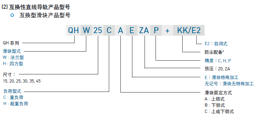 (2) 互換性直線導(dǎo)軌產(chǎn)品型號(hào)