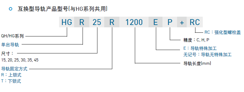 ? (3)互換型導(dǎo)軌產(chǎn)品型號(hào)(與HG系列共享)