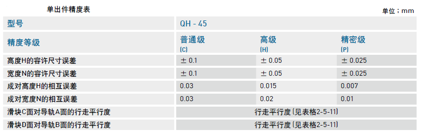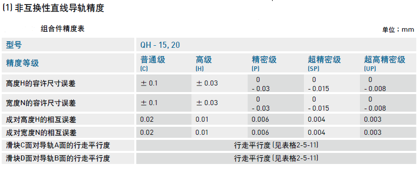 靜音式重負(fù)荷型滾珠直線導(dǎo)軌QH系列精度等級