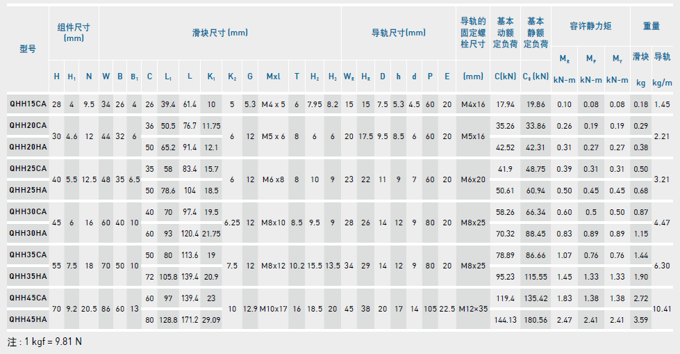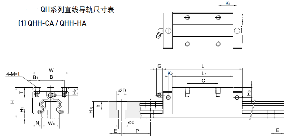 QH系列直線導軌尺寸表