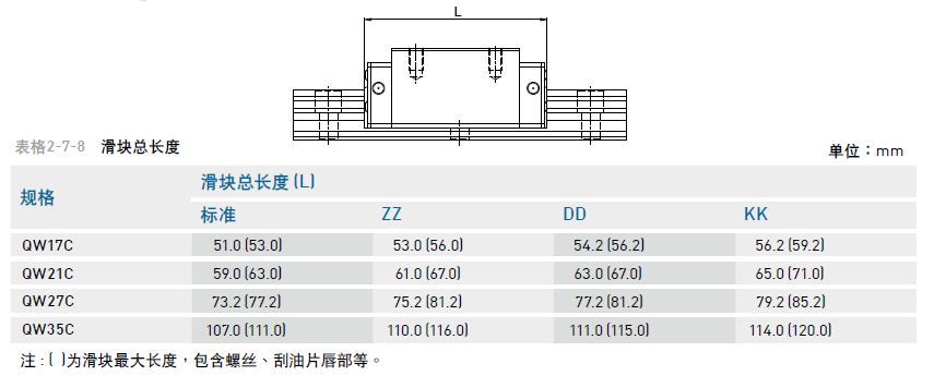 注 : ( )為滑塊最大長(zhǎng)度,包含螺絲、刮油片唇部等。