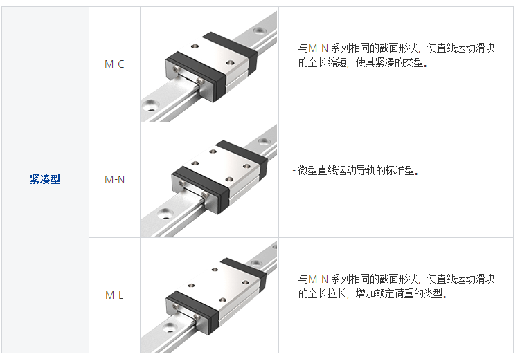 體積小、輕量化,滑塊主體的一部分采用了樹脂材料,重量減少約20%,特別適合小型化設(shè)備使用。不銹鋼材質(zhì)之線性滑軌,包含滑塊、滑軌及其它金屬配件如鋼珠、保持器等,皆使用不銹鋼材質(zhì),具備防銹的特性。采用哥德型四點接觸設(shè)計,可承受各方向負(fù)荷,具備剛性強(qiáng),精度高等特性。有鋼珠保持器設(shè)計,在精度允許下具備互換性。